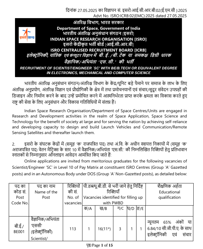 🚀 ISRO भर्ती 2025 – एक नज़र में (संक्षिप्त सारणी) विवरण जानकारी संस्थान ISRO (भारतीय अंतरिक्ष अनुसंधान संगठन) कुल पद